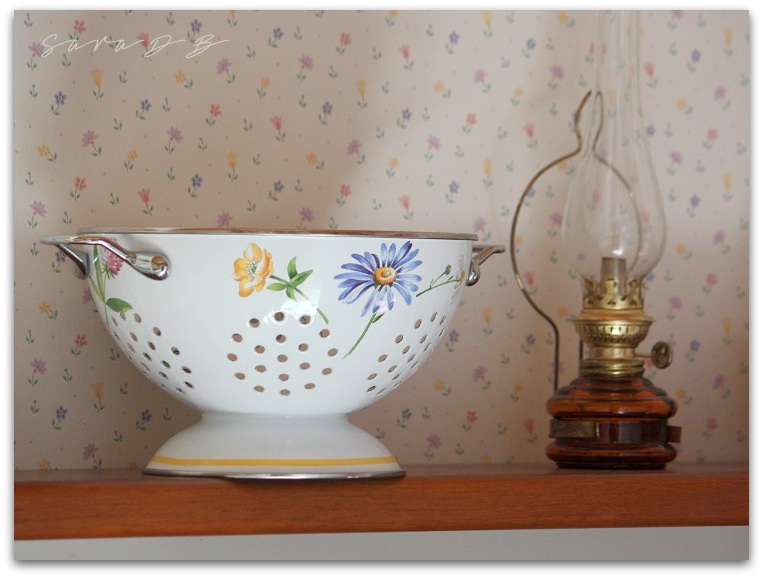Syksy, samoin kuin kevät, on kotona valoisaa aikaa, koska aurinko paistaa matalalta ja suoraan huoneisiin. Iltapuolella se paistaa keittiöön ja innostuin kuvamaan keittiön väripilkkuja.